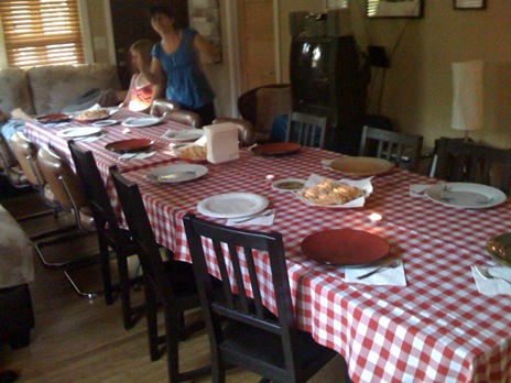 Carly is amazing. She came up with a quick and easy ice-cream cake!!! She layered the pan with cookies and cream ice-cream sandwiches, then topped with cool whip, and then sprinkled with Oreo pieces!! It was amazing!!!